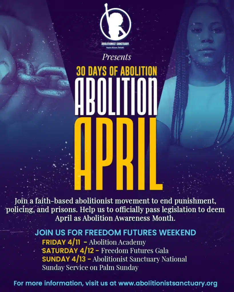 A signature event during Abolition April is our Freedom Futures weekend! In 2025, we hosted an in-person Abolition Academy on Friday, a gala on Saturday, and a national Sunday and protest for Palm Sunday.